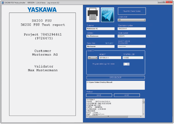 FSU Protocol Maker reads out an FSU data backup file and compiles it to a complete acceptance protocol, covering all information relating to safety. The report can be displayed, printed out or exported as an XML-file, e.g. for transfer to higher-level quality management software.